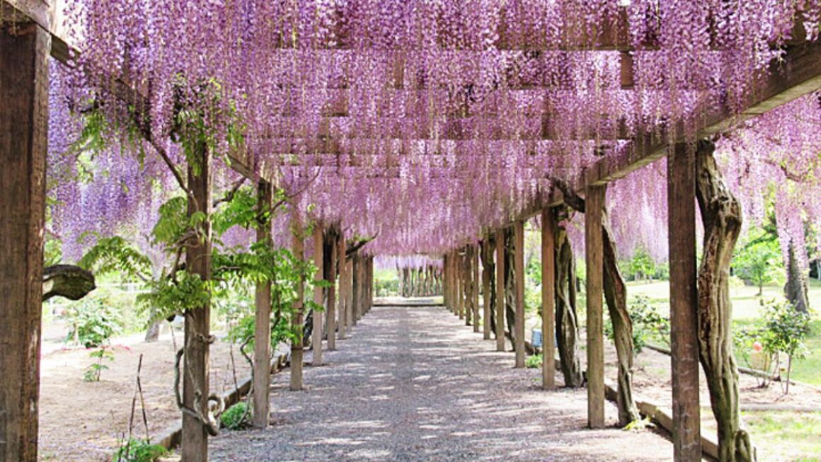 会場に近づくにつれ、ふわりと漂ってくる甘い香りに気づきます。その香りをたどるように進んでいくと、見事に咲き誇る藤棚が目の前に広がりました。淡い紫から濃い紫、そして白へと続くグラデーションはまるで絵画のようで、思わず足を止めて見入ってしまいます。長く垂れ下がる花房が風に揺れる様子はとても優雅で、時間がゆっくり流れているような感覚を覚えました。